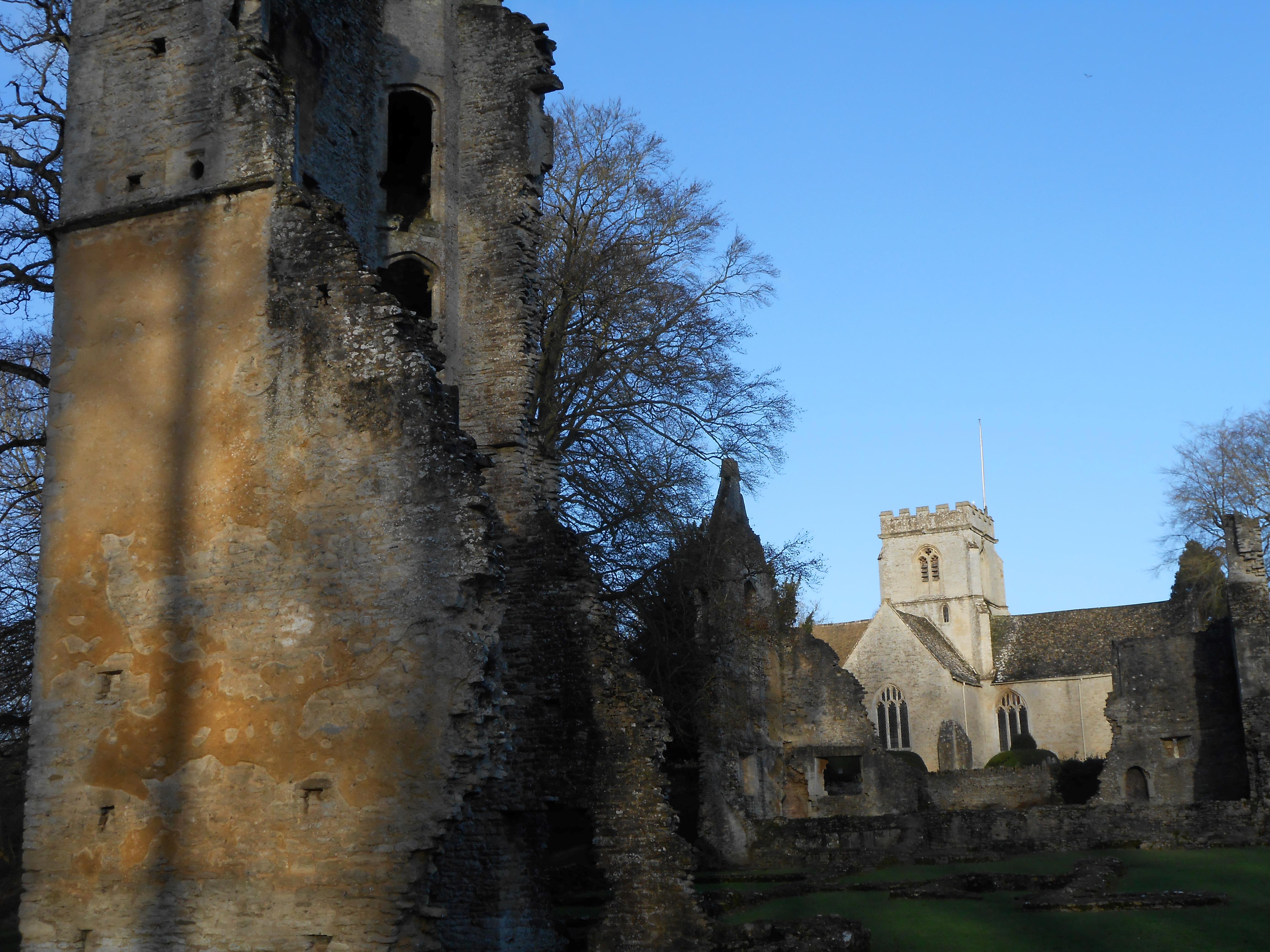 Minster 4Determined for it not to be the winter of my discontent, I eventually followed people whose Barbour jackets and heavy boots indicated they were looking for the same thing as me. I smirked when I saw them enter the churchyard like I had previously done but then they didn’t reappear. Oh, so I had to walk through the churchyard! Indeed, behind St Kenelm church, totally invisible from the path, lay the still impressive ruins of Minster Lovell Hall.