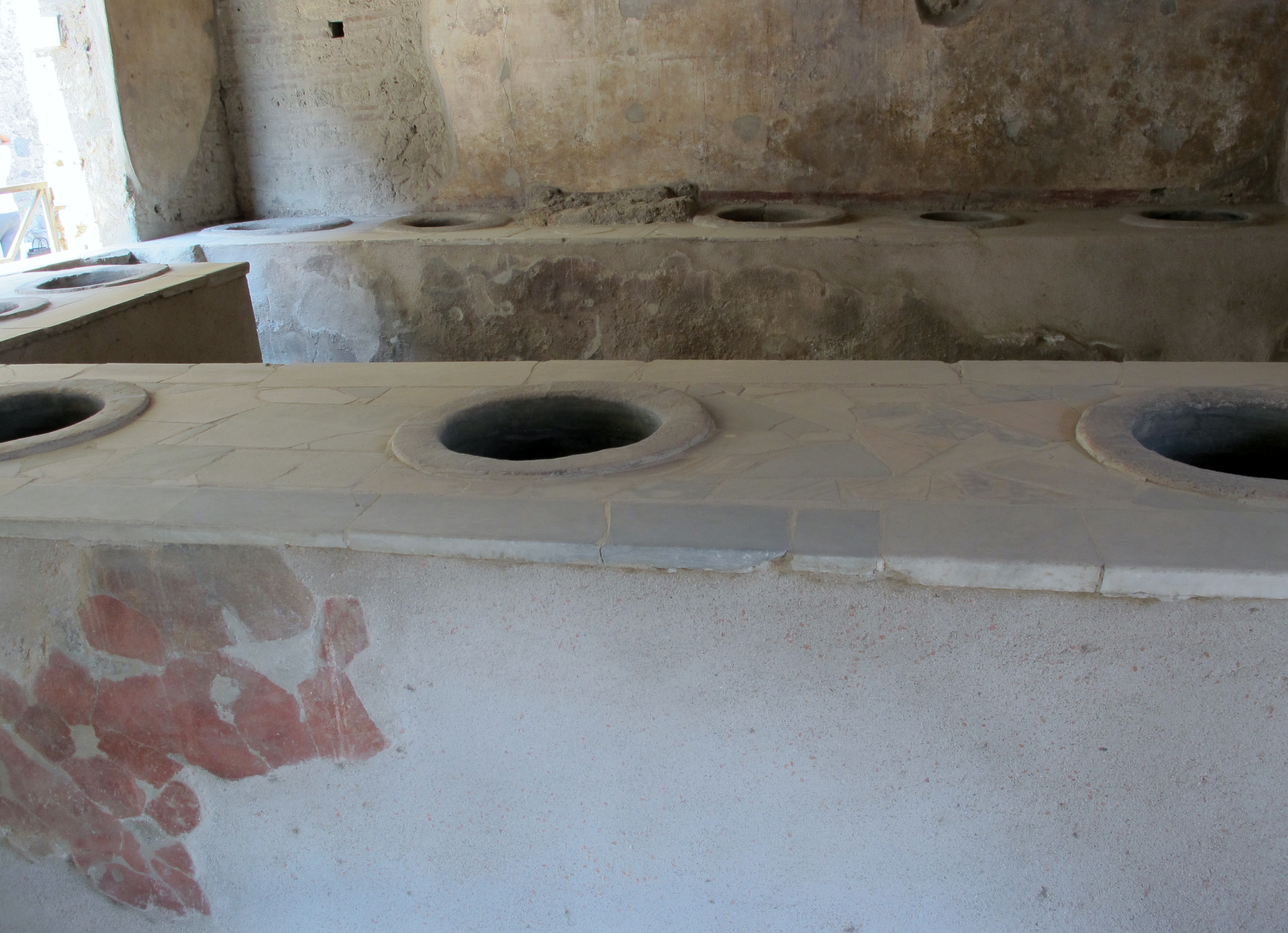 The dishes were kept warm by a fire in the holes. Fast food the ancient way.